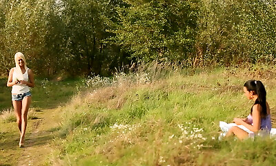 Zwei heisse Teenies mit prallen titten ficken sich im freien